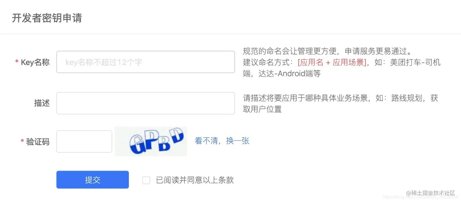 点击创建新密钥,填写Key名称、描述、验证码,等待审核通过: