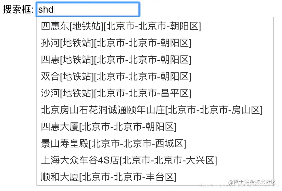 用户在搜索框输入地点的关键词,即可呈现相应的地点提示文字,将最佳的可能搜索结果以下拉列表的方式呈现给用户,提升了用户的地图搜索体验和地点查找效率。