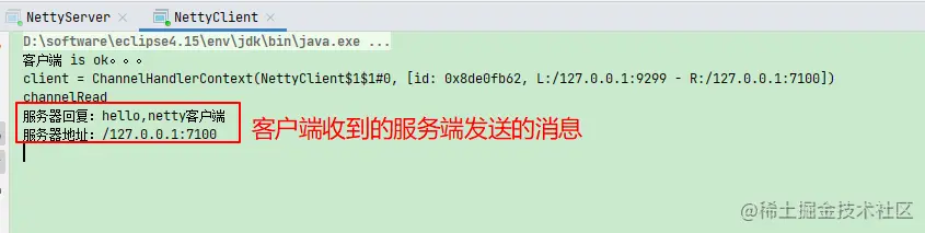 服务端消息读取完之后发消息给客户端,客户端收到消息打印到控制台