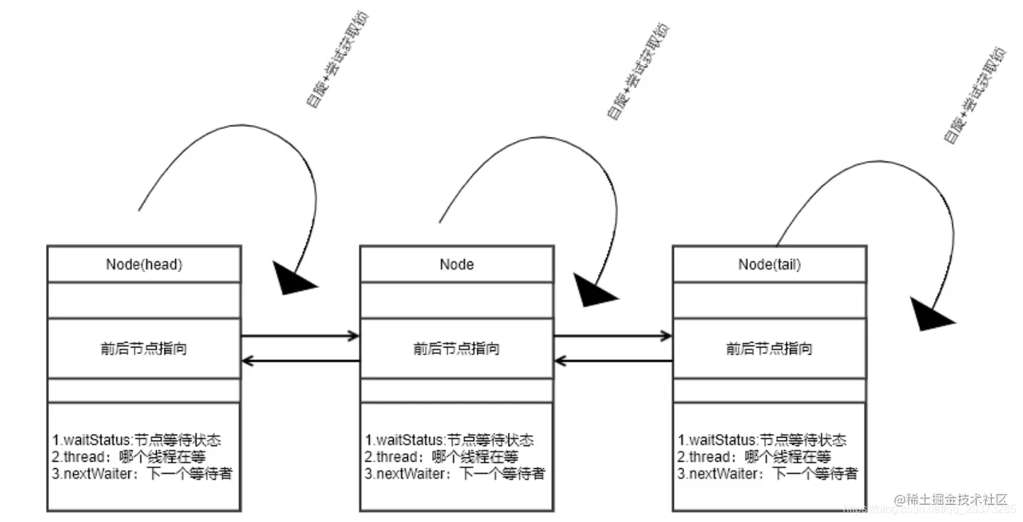 - lock的存储结构:一个int类型状态值(用于锁的状态变更),一个双向链表(用于存储等待中的线程)
