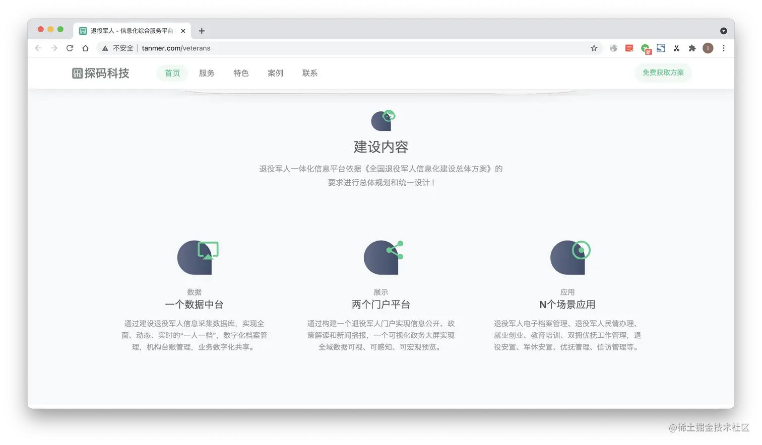 展示门户平台:通过构建一个退役军人门户实现信息公开、政策解读和新闻播报,一个可视化政务大屏实现全域数据可视、可感知、可宏观预览。
