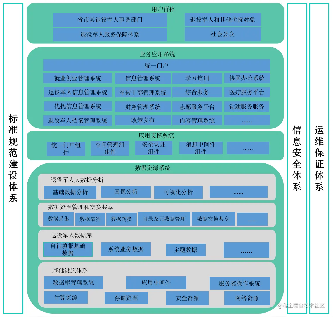 应用场景系统:退役军人电子档案管理、退役军人民情办理、就业创业、教育培训、双拥优抚工作管理,退役安置、军休安置、优抚管理、信访管理等。