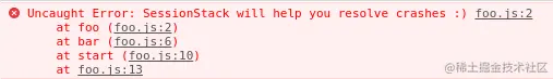 如果在 Chrome 中执行(假设代码在 foo.js 的文件中),将会产生如下的堆栈追踪: