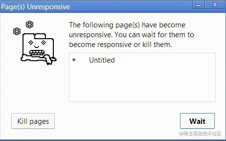 一旦浏览器开始在调用栈中执行这种任务,浏览器将会在相当一段时间内停止交互。大多数浏览器会抛出一个错误,询问你是否关闭网页。