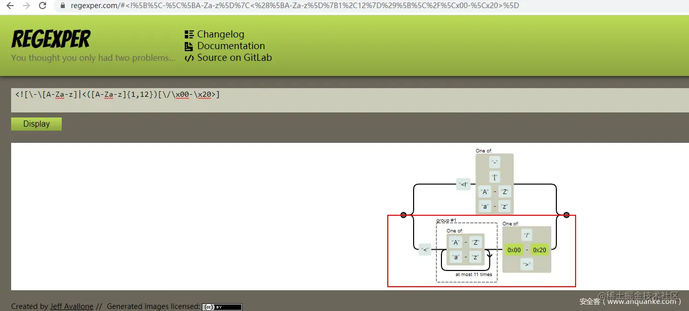 标签正则从整体上来说匹配两种情况,一是请求参数值中有子字符串以<! 开头的;二是请求参数值中有子字符串以< 开头的。对于第二种情况,标签正则会匹配< 字符后接1到12个大小写字母,再后接/ 或> 或0x00 - 0x20 字符的字符串。所以下面这些常见的xss测试payload都会拦截。