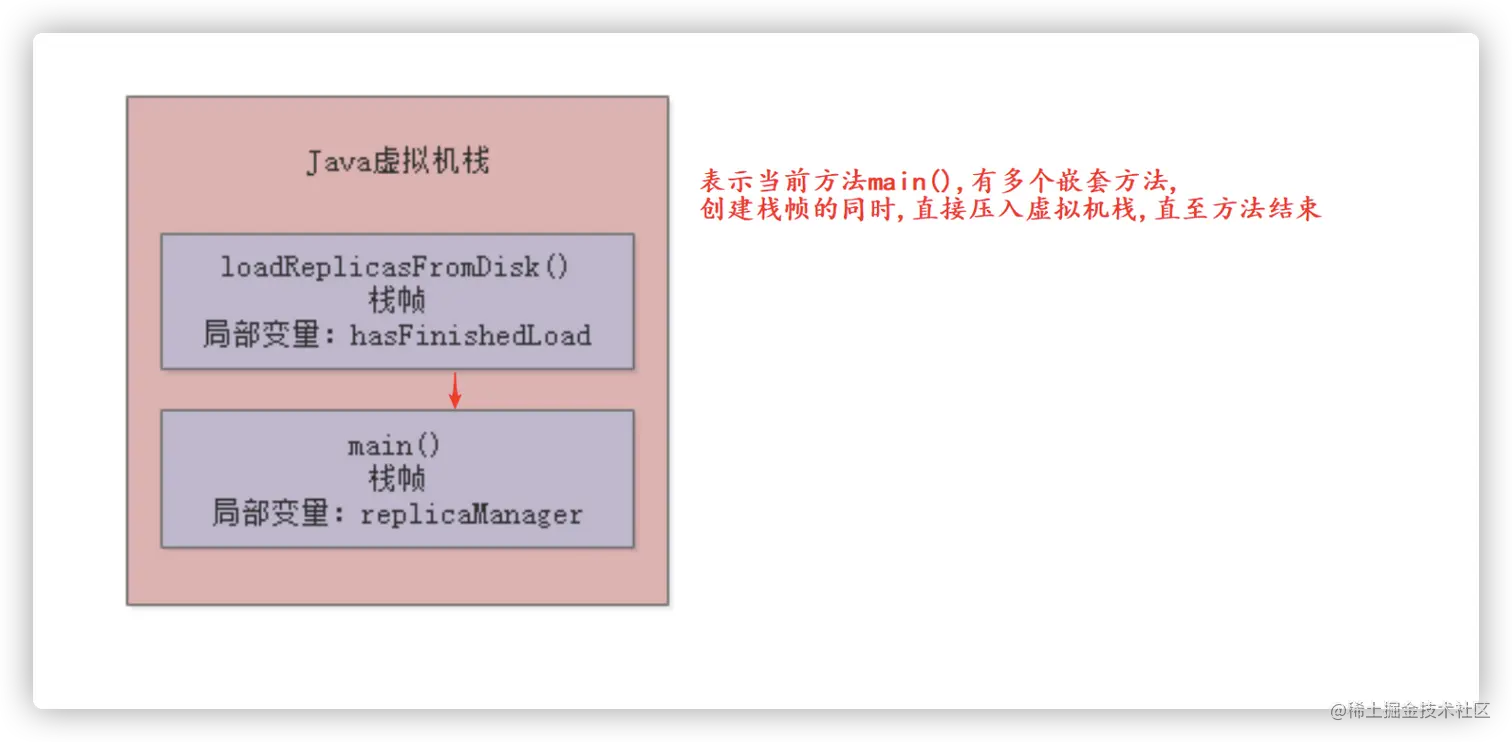 如果有多个递归的方法嵌套, 此时, 这个因为当前虚拟机栈里面的栈帧