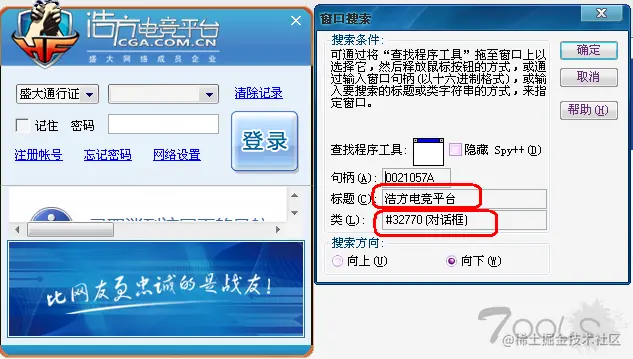 首先分析XX电竞平台的登陆窗体。使用Spy++对窗体进行分析以获得我们所需要的控件信息。