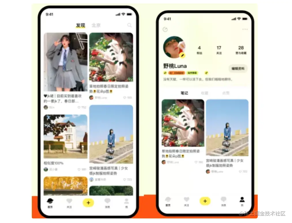 根据《松果财经》观察,在 UI 设计上,“树莓”APP和小红书很相似。首页都是推荐用户分享的日常笔记,以瀑布流的形式展示。而用户也可以点击底部的“+”号进行内容创作。