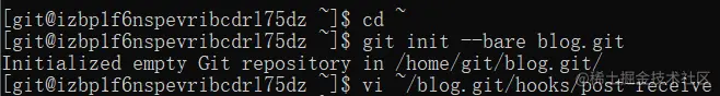创建一个 Git 的仓库,并且新建一个post-receive文件