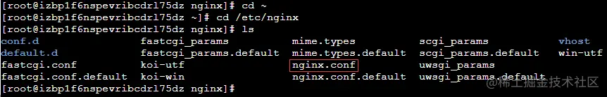 etc/nginx/下的nginx.conf。查看 nginx 的默认配置文件: