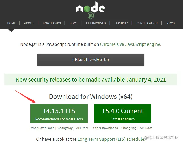 浏览器进入NodeJS 官网,安装 LTS(Long Term Support)版本。
