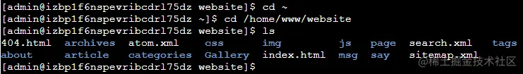 此时本地的博客页面已经部署到了服务器的/home/www/website目录下: