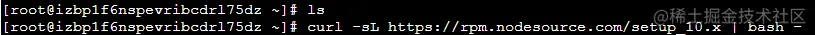 curl -sL https://rpm.nodesource.com/setup_10.x | bash -