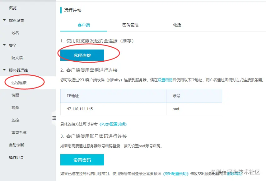 此步骤需要在云服务器上完成,具体方法可以使用远程连接,也可以使用 Xshell 客户端进行连接。