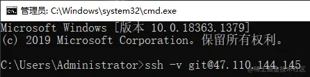 然后我们在本地电脑上,打开 cmd,使用ssh方式连接云服务器,输入: