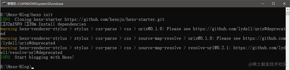 Hexo-Blog,在 cmd 命令行中进入该目录,输入hexo init初始化根目录。 -