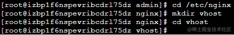 /etc/nginx/目录,在此目录下创建一个文件夹vhost:cd /etc/nginx mkdir vhost cd vhost输入