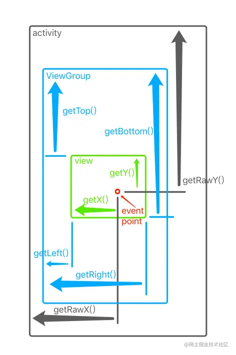 getRawX()、getRawY()