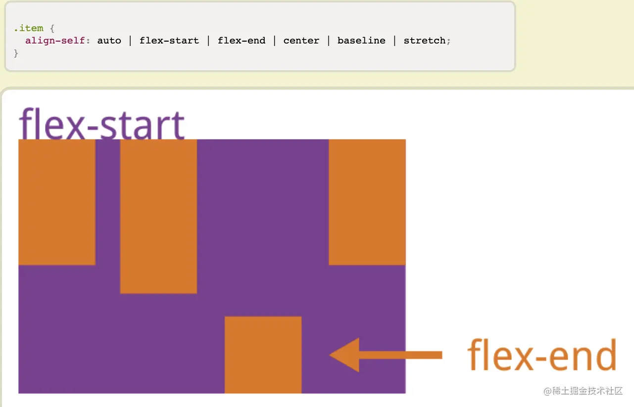 align-self自己特立独行- align-self属性允许单个项目有与其他项目不一样的对齐方式,可覆盖align-items属性