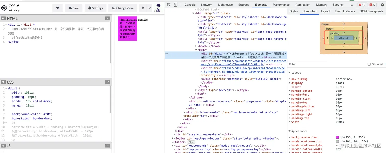 加了box-sizing:border-box; offsetWidth = 100px