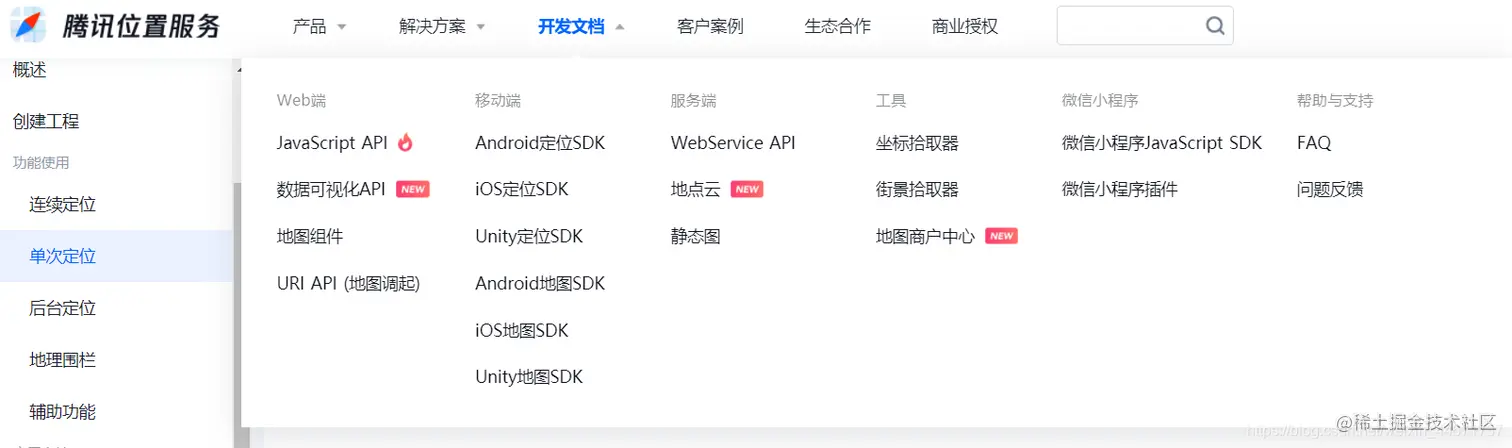 可以看到腾讯位置服务已经提供了一套针对各个终端的开发接口,快去学习吧!