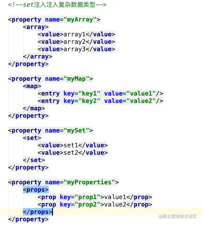 在使用set方法注入时,需要使用 property 标签,该标签属性如下: