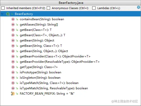- 如果Bean实现了BeanFactoryAware接口的话,Spring将调用setBeanFactory()方法,将BeanFactory容器实例传入