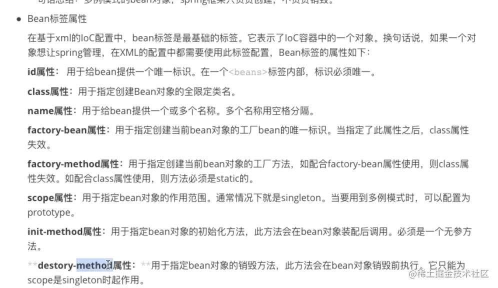 用于指定bean对象的销毁方法,此方法会在bean对象销毁前执行。它只