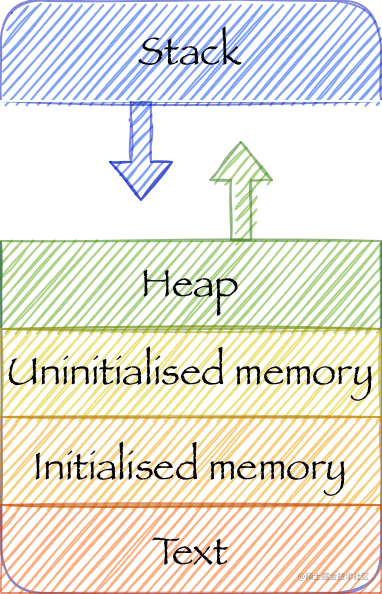 当太多的方法调用被添加到调用堆栈中时,分配给调用堆栈的有限内存就会变满,调用堆栈之外的内存位置就会被覆盖。首先是堆,然后是未初始化的内存,初始化的内存,最后是文本段。