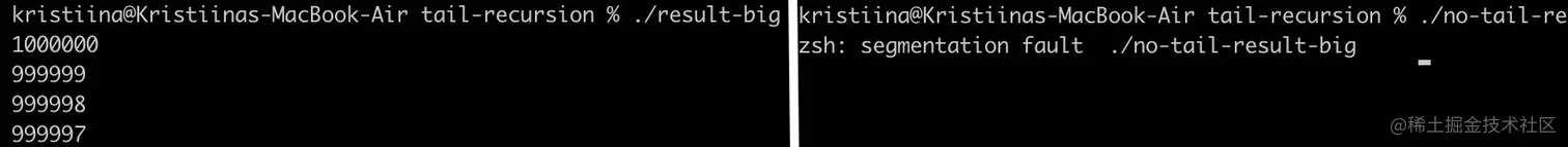 这里我们再来看看分段故障。 这种情况只发生在无尾巴递归的程序中。为什么会发生这种情况?什么是分段故障,为什么只有一个程序会崩溃?为了回答这些问题,我将从调用栈开始。