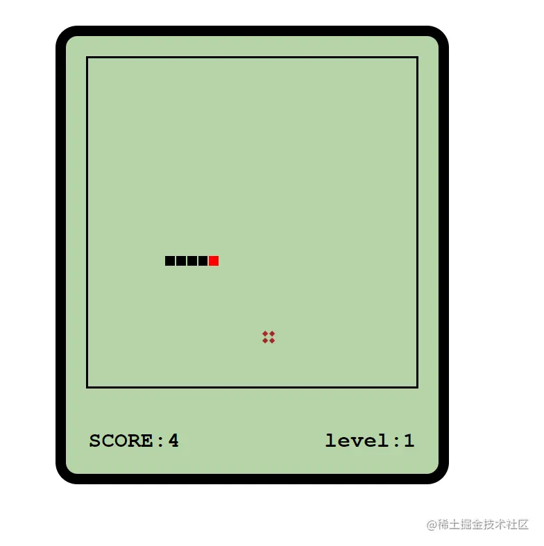 //设置变量 @bg-color:#b7d4a8; //清除默认样式 *{ padding: 0; margin: 0; //改变盒子模型的计算方法 box-sizing: border-box; } body{ font:bold 20px "Courier" } //设置主窗口的样式 #main{ width: 360px; height: 420px; //设置背景颜色 background-color: @bg-color; //设置居中 margin:100px auto; border:10px solid black; //设置圆角 border-radius:20px; //开启弹性盒模式 display: flex; //设置主轴方向,自上而下 flex-flow: column; //设置主轴的对齐方向 justify-content: space-around; //设置侧轴的对齐方式 align-items: center; //游戏的舞台 #stage{ width:304px; height:304px; border: 2px solid black; //开启相对定位 position: relative; //设置蛇的样式 注意这里设置的是snake里面的div的样式 #snake{ &>div{ width: 10px; height: 10px; background-color: black; // margin-right: 2px; //这里为蛇的身体设置一个边框,目的是为了让蛇的每一段分开, //由于边框的背景颜色和舞台的背景颜色一样,所以我们看到的蛇是一段段的 border: 1px solid @bg-color; //开启绝对定位,因为蛇的移动要有参照物 position: absolute; } //蛇头是红色的,便于区分 &>div:first-child{ background-color: red; } } #food{ width: 10px; height: 10px; //background-color: rgb(167, 37, 37); // border: 1px solid @bg-color; position: absolute; left: 40px; top:100px; display: flex; //设置横轴为主轴,warp表示自动换行 flex-flow: row wrap; justify-content: space-between; align-content: space-between; &>div{ width: 4px; height: 4px; background-color: rgb(167, 37, 37); //使四个div旋转45° transform: rotate(45deg); } } } //积分盘 #score-panel{ width: 300px; display: flex; //设置主轴的对齐方法 flex-flow: row; justify-content: space-between; align-items: center; } }