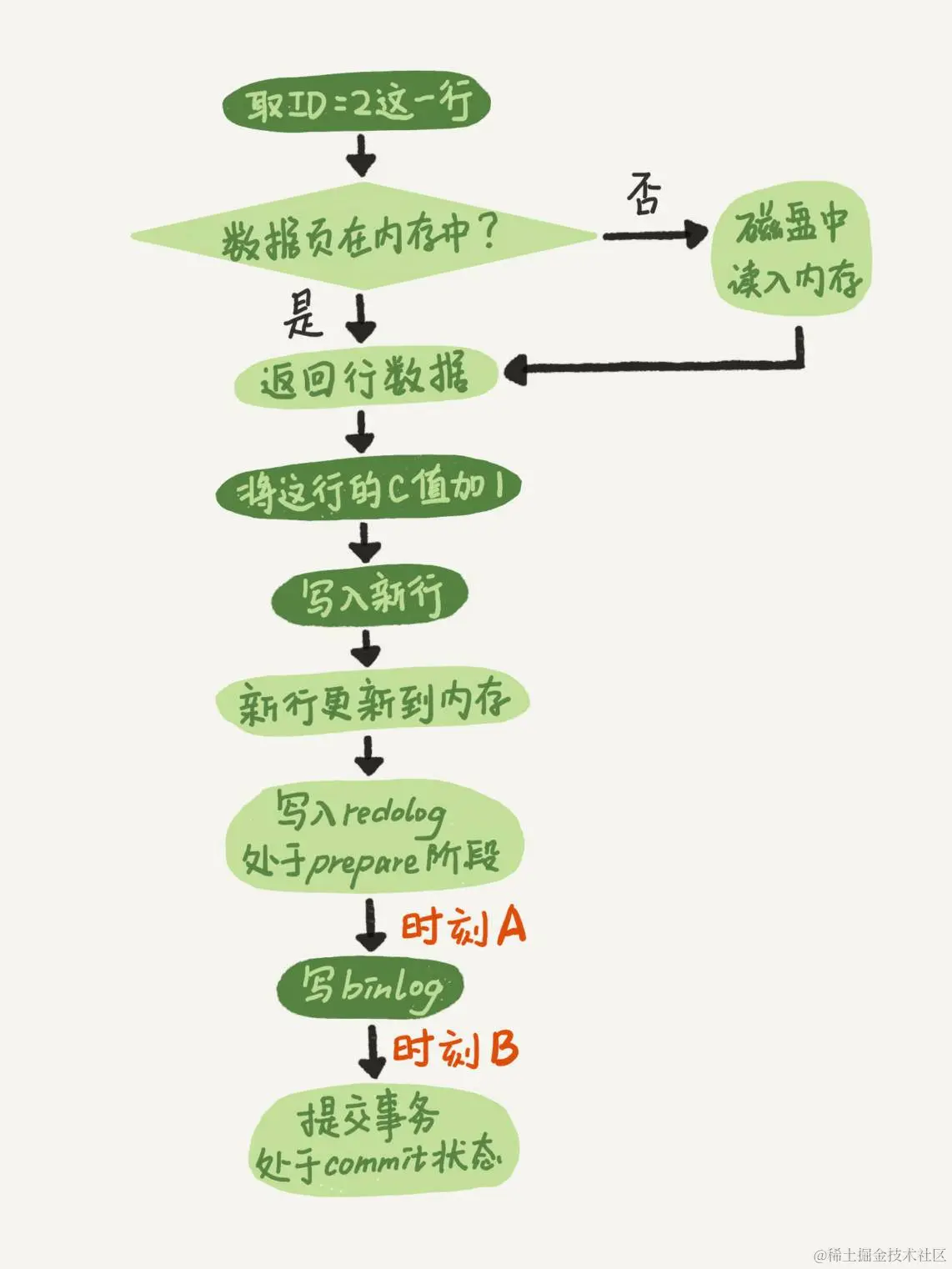 最后三步是将 redo log 的写入拆成了两个步骤:prepare 和 commit,这就是"两阶段提交"。