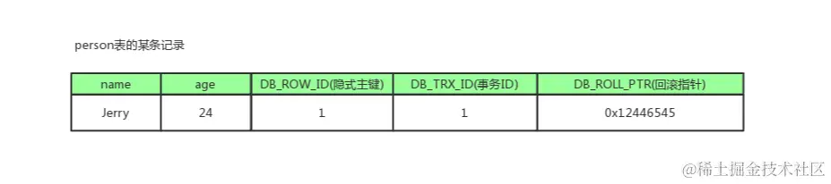 我们数据库中的每行数据,除了我们肉眼看见的数据,还有几个隐藏字段,分别是db_trx_id、db_roll_pointer、db_row_id。