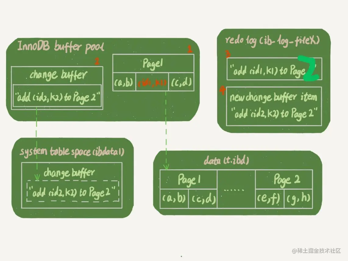 - Page 2 没有在内存中,就在内存的 change buffer 区域,记录下“我要往 Page 2 插入一行”这个信息