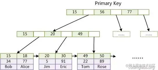 性能差距:微乎其微,当需要读一条记录的时候,并不是将这个记录本身从磁盘读出来,而是以页为单位,将其整体读入内存(每个数据页大小16KB),因此通常只需一次指针寻找和一次计算。如果下一个k=5记录不在这个数据页,必须读取下一个数据也,概率很低,忽略不计。
