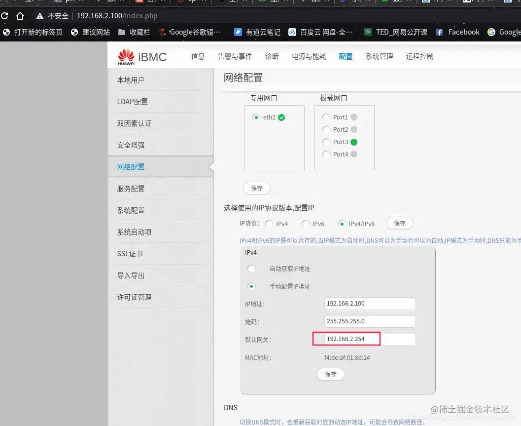 3.修改服务器管理口IP地址跟网关