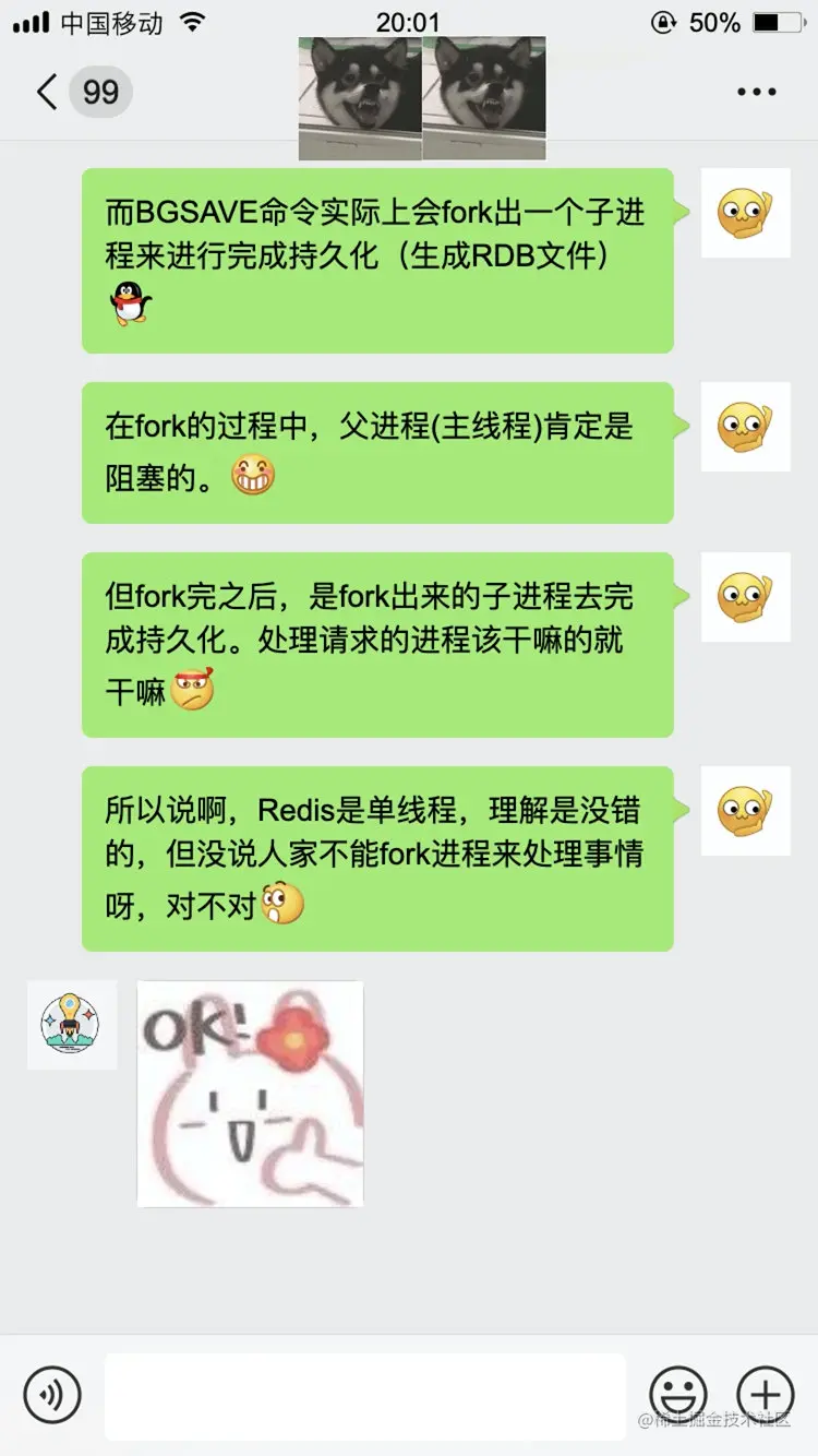 AOF持久化:根据配置将写命令存储至日志文件中,顺序写&&异步刷盘(子线程),重写AOF文件也是需要 fork 子进程
