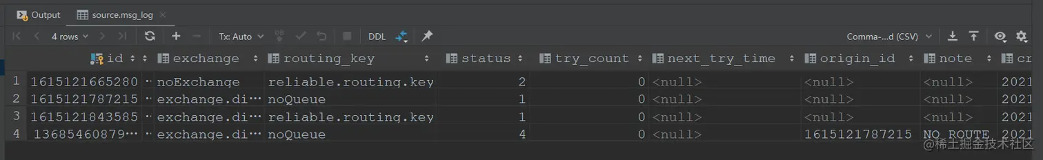 - 消息发送前对消息存盘,这里使用的rabbitTemplate为新配置的模板