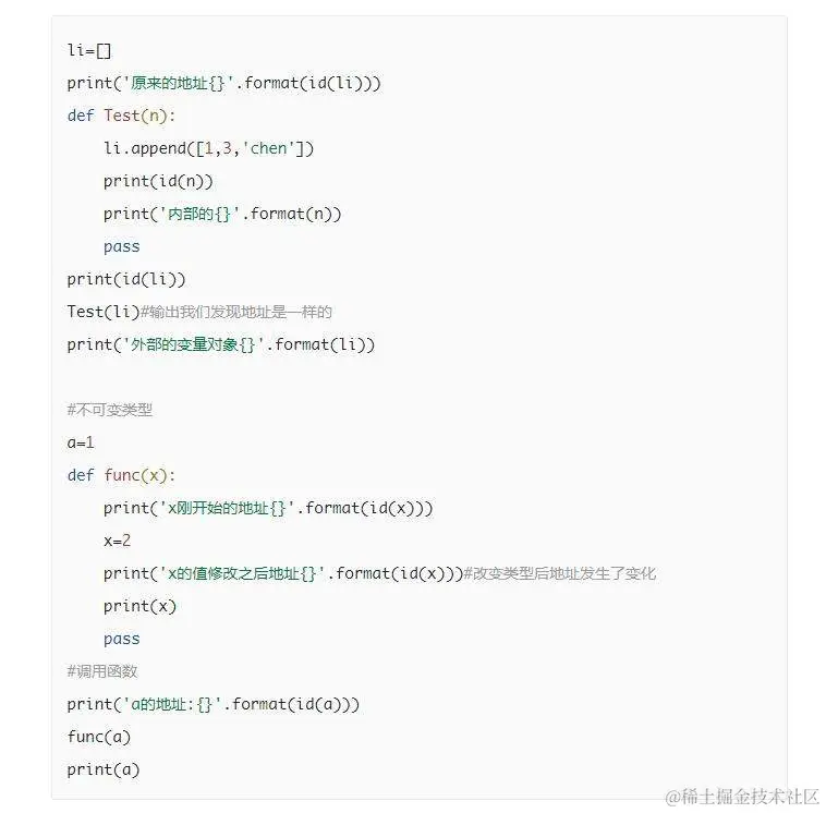 - 在python中,值是靠引用来传递来的,可以用id查看一个对象的引用是否相同,id是值保存在内存中那块内存地址的标识。