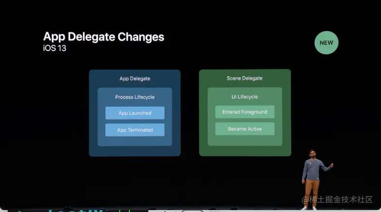 在推出SceneDelegate之前,整个应用的生命周期和UI生命周期都是依赖AppDelegate进行管理,在这之后,UI生命周期交给了SceneDelegate来管理,而AppDelegate就用来管理应用的生命周期和SceneDelegate的生命周期。