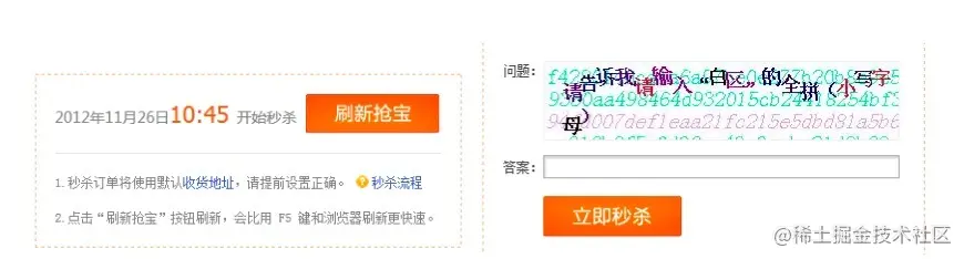 这样就把90%的静态数据缓存在了用户端或者CDN上,当真正秒杀时,用户只需要点击特殊的“刷新抢宝”按钮,而不需要刷新整个页面。这样一来,系统只是向服务端请求很少的有效数据,而不需要重复请求大量的静态数据。