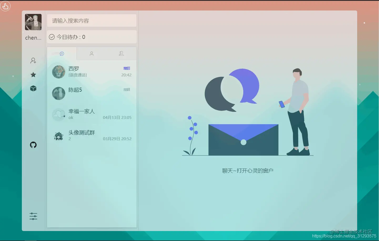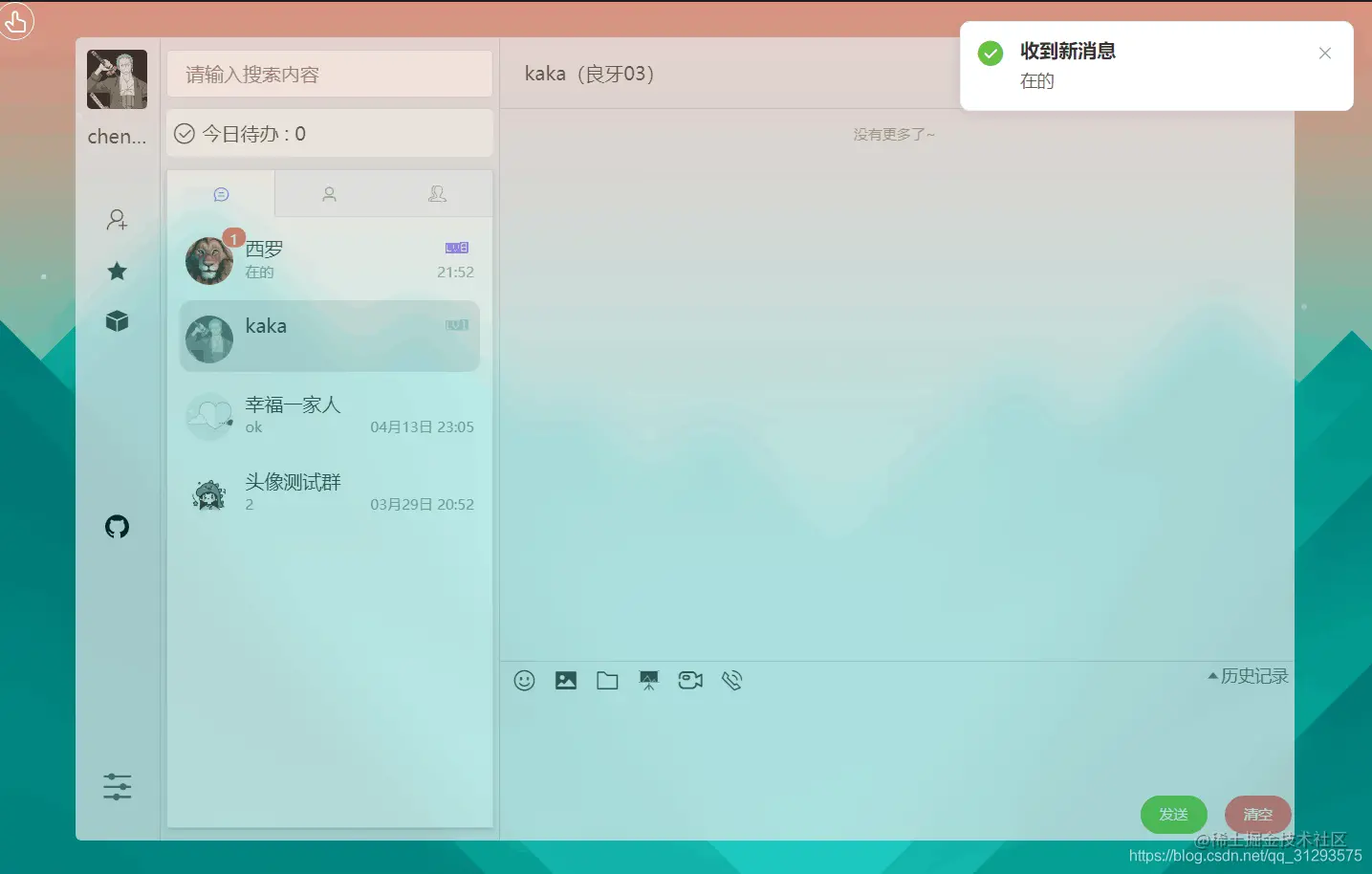 聊天系统、Vue.js、React.js、node.js、MongoDB、websocket、socket.io、前后端分离、毕业设计。