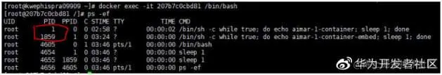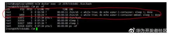 hostname 从 kwephispra09909 变化为 207b7c0cbd81,说明我们已经进入到容器里面了。在容器中,我们尝试着启动一个新的进程。
