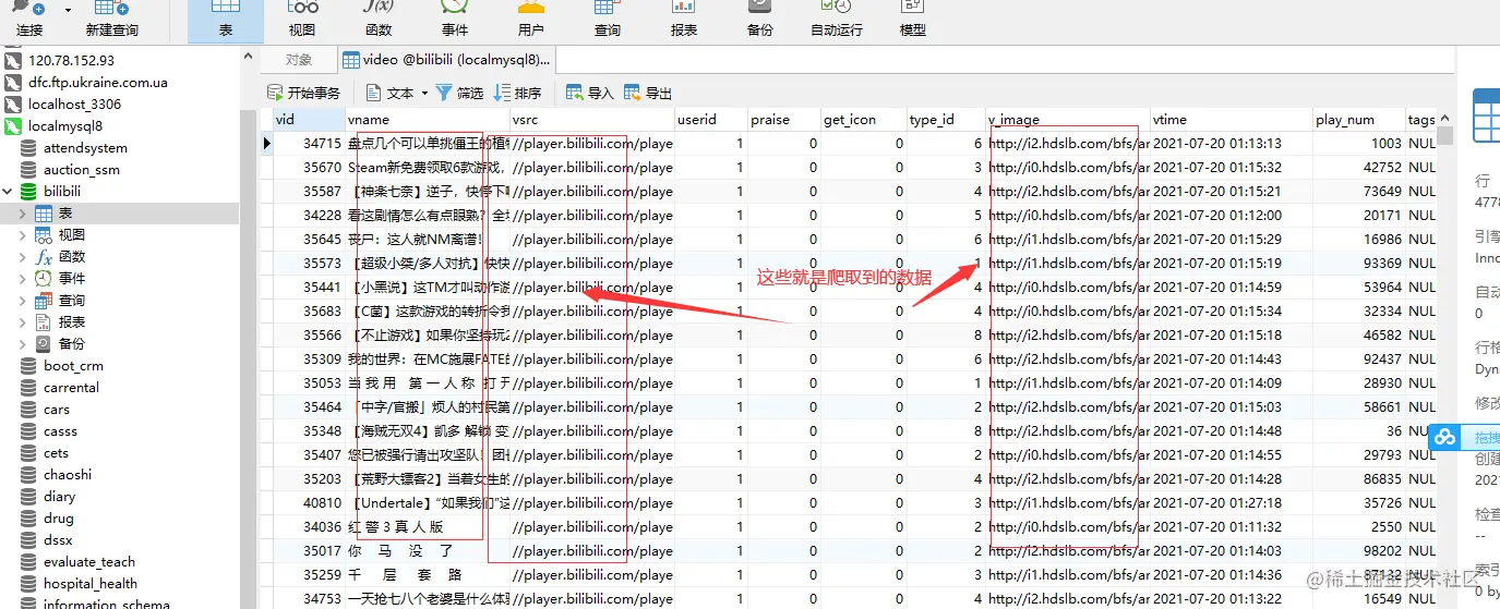 需求:自己开发的一个视频网站不想把自己上传视频和封面图片,因为一个一个上传视频文件和封面图片还是很费时间的,想着直接抓取点b站上的视频iframe分享的链接和图片链接到我的数据库中,这样网站就很快就填充起来了,看着就丰满多了(单纯是为了让我开发的系统看着有数据丰满点好看)。