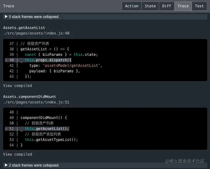 Trace跟踪当前 action 执行的代码位置 -