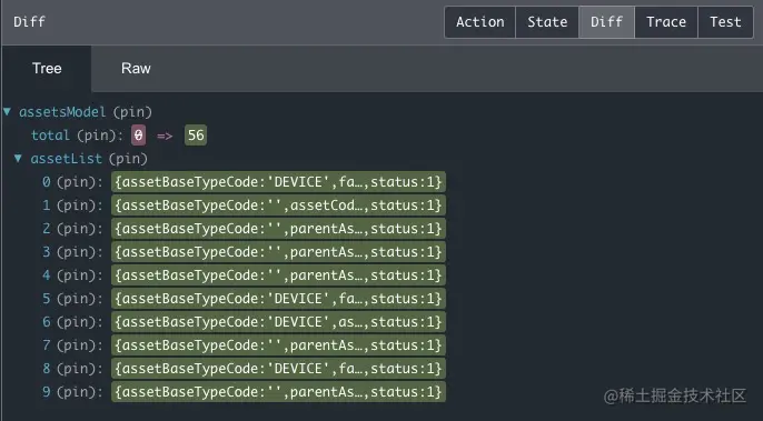 Diff可以查看当前 action 执行后,state 发生了哪些变化 -