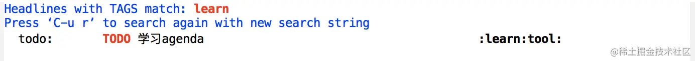 在上图中可以看到,将学agenda归为学习和工具标签下,这样,就可以通过标签搜索的功能将该Tag下所有的任务搜出来。