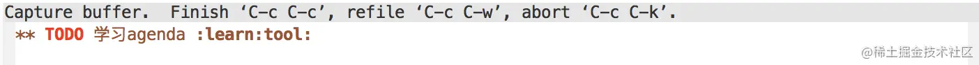 见上面新建一个任务时的图,新建任务是基于Template的,我们利用比如大写的TODO字样是Emacs自带的Template。同时,org-agenda支持用户配置自己的template。