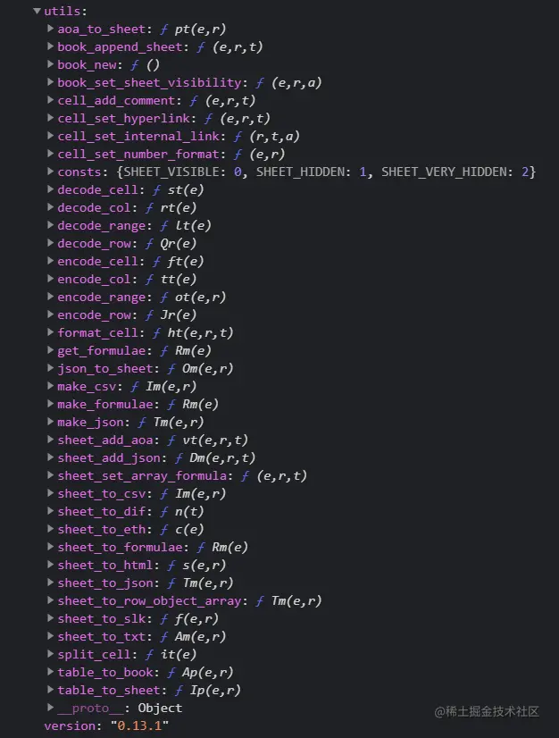 导出 excel 的话就得把我们的数据转化为插件认识的数据。官方提供的 API(均在 XLSX.utils 里面):