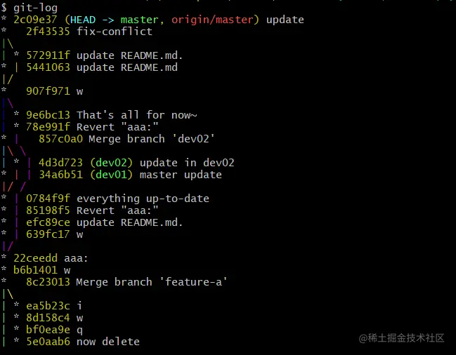 # 前文已为查看日志操作(git log --pretty=oneline --all --graph --abbrev-commit)命别名(git-log),可直接使用别名查看